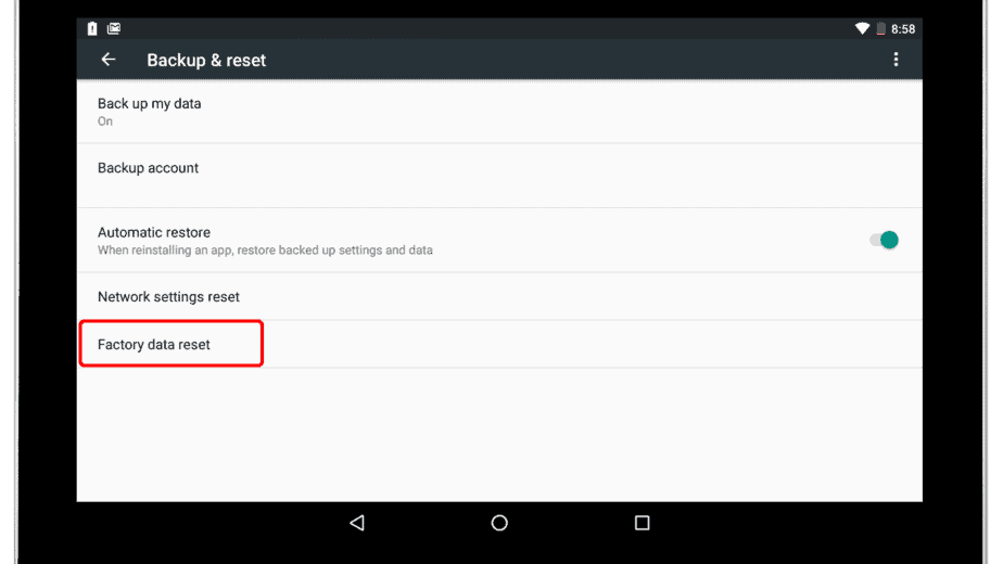 At the bottom of the screen, press Factory Data Reset to erase all the data and put the device in a like-new state.
